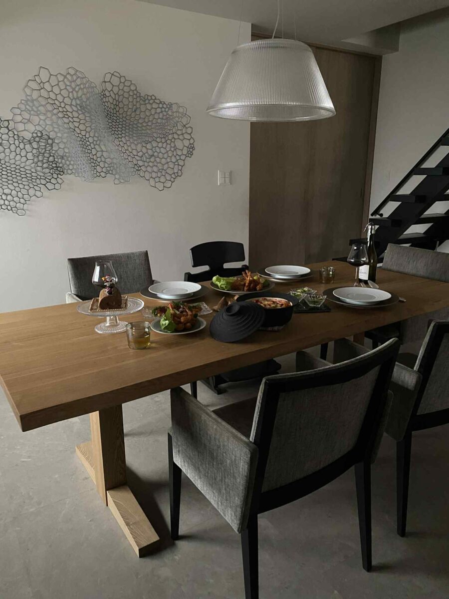 ダイニングテーブルは当初 ブラックウォールナットのモダンデザインのを使っていたが、