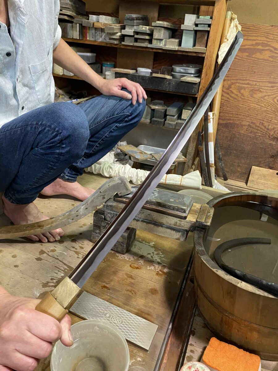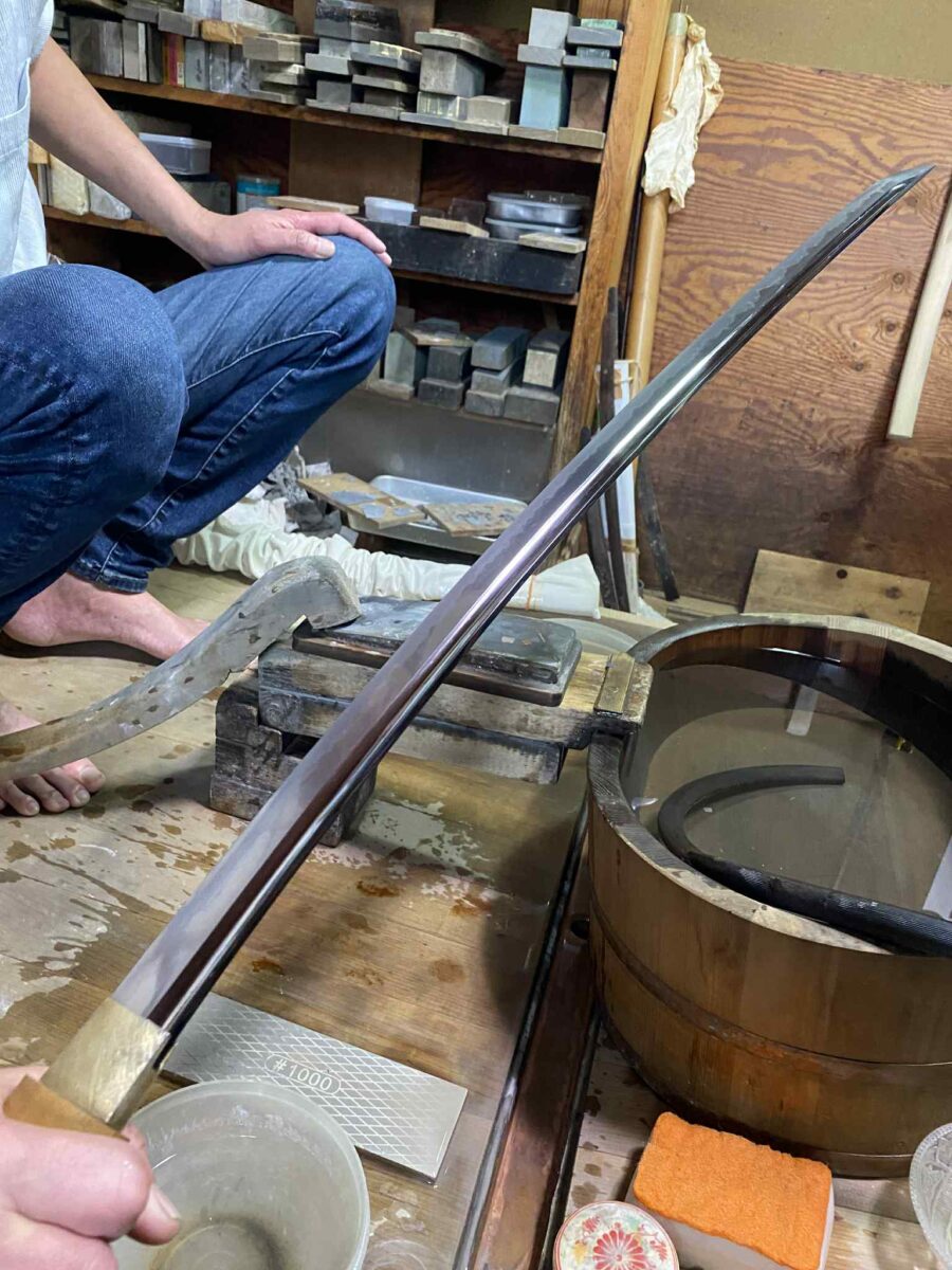 刀の刀文の違いや研ぐ道具、やり方などを至近距離で見せてもらった。