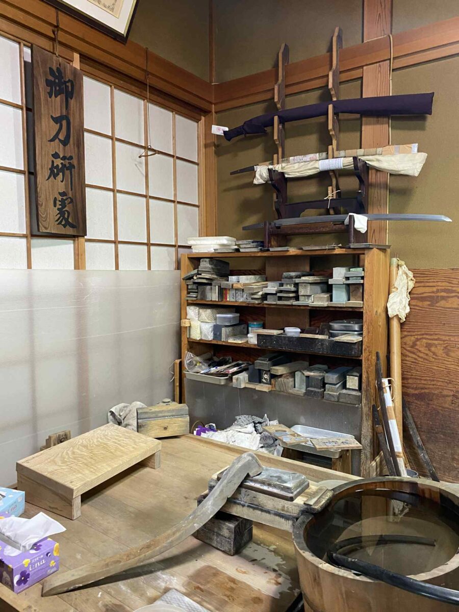次は車を走らせ 日本刀の研磨をされてるところを訪問、実際に研いでいるところを見学させてもらった。