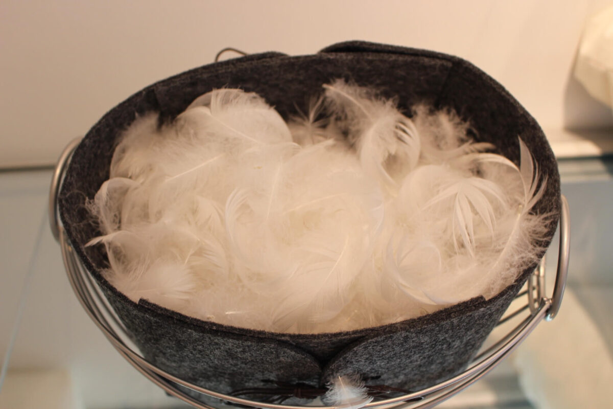 IWATAは、独自の精製技術で羽毛の不純物を徹底的に除去。清潔で高品質な羽毛を実現し、軽くて暖かい寝心地を長く維持します。